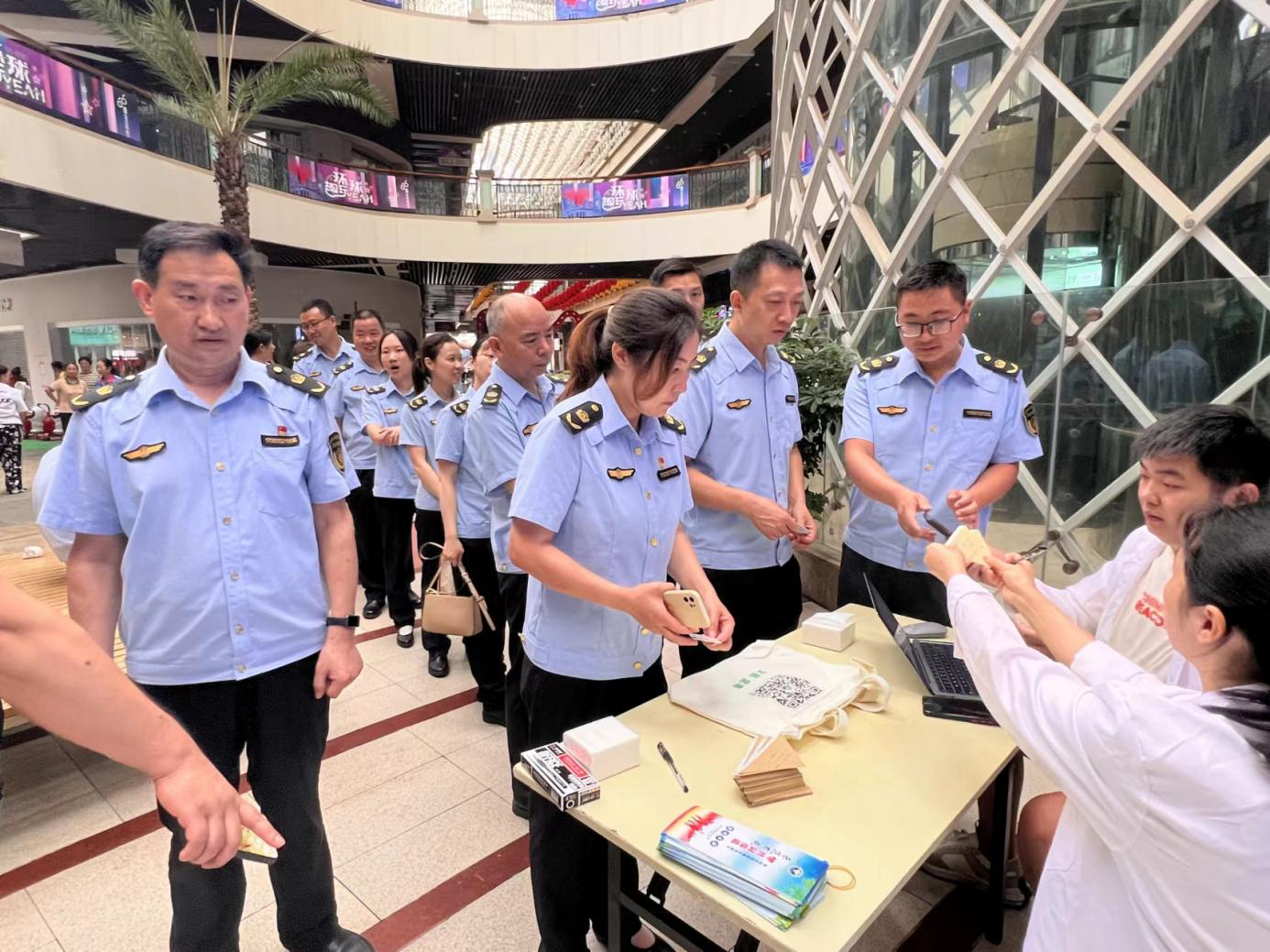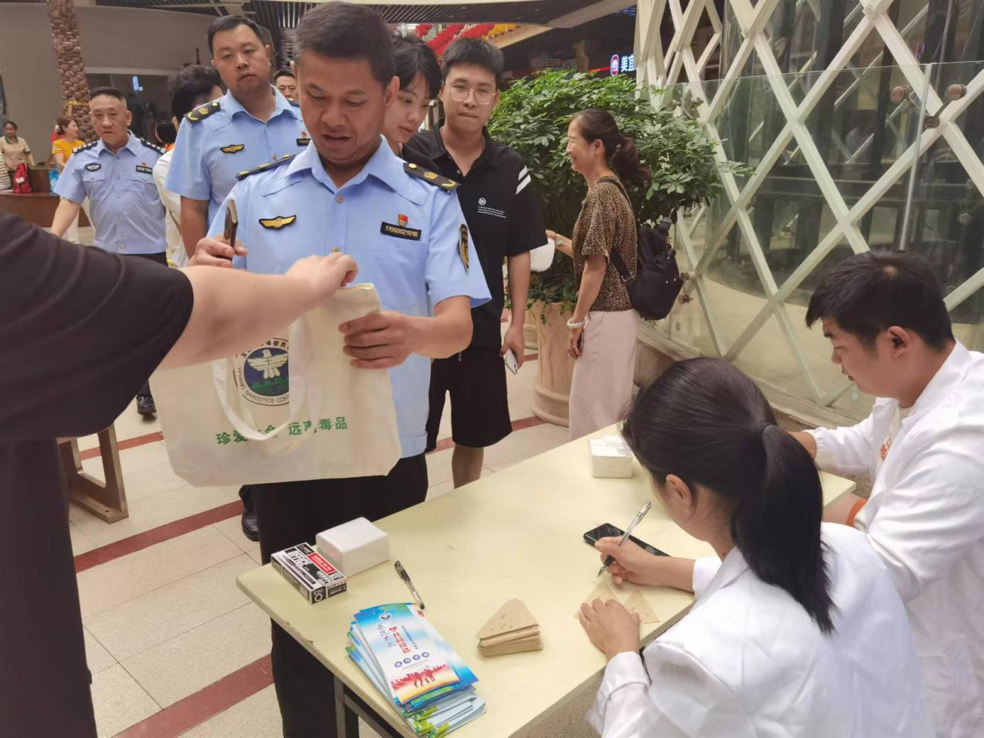 集中采样现场,利用led电子显示屏循环播放禁毒宣传片,并向参检人员发放了《禁毒宣传手册》300余份及禁毒宣传手提袋200余个,有效降低重点场所涉毒风险,筑牢重点人员思想防线、行为防线和法律底线。