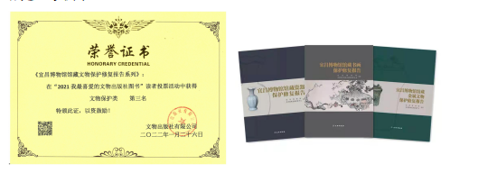近日,在文物出版社举办的“2021我最喜爱的文物出版社图书”读者投票活动中,《宜昌博物馆馆藏文物保护修复报告系列》获得文物保护类第三名,得到广大读者的认可。
